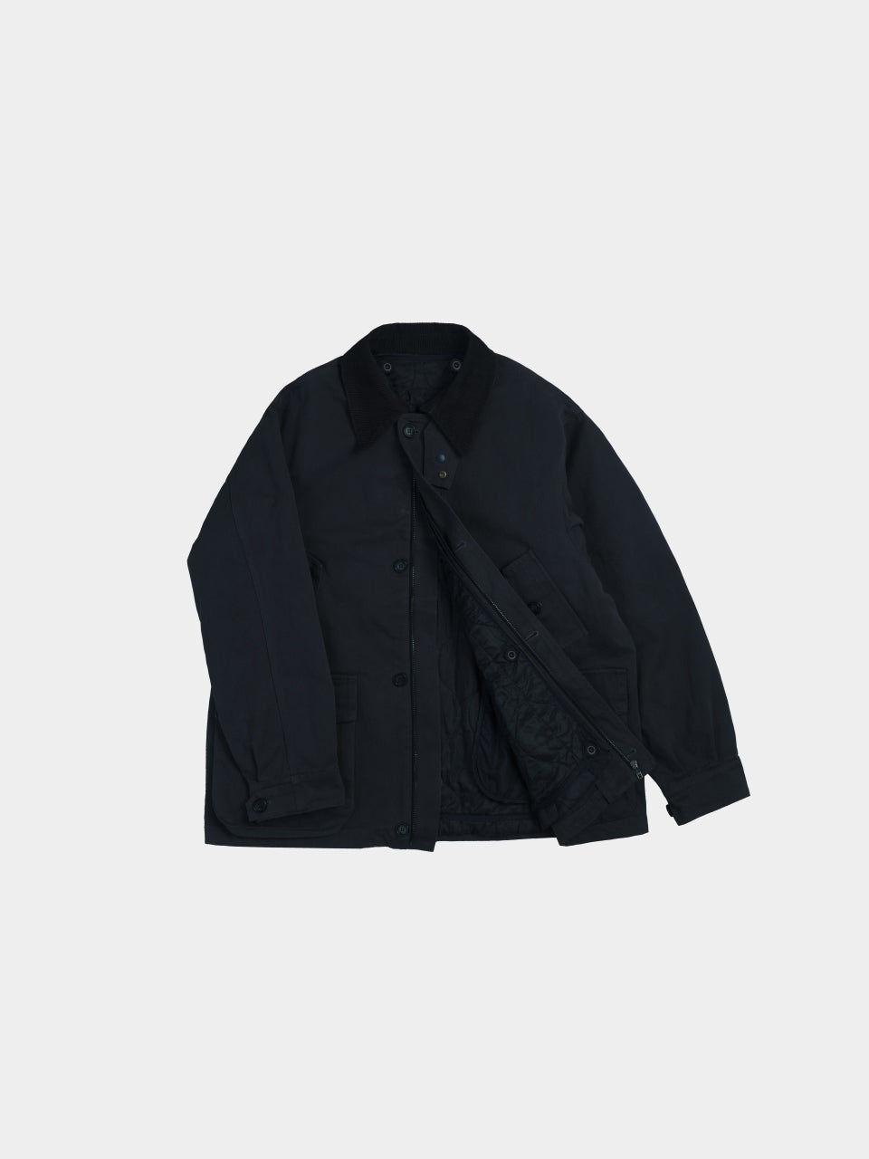 This heavy outerwear, based on the traditional field jacket, features Havehad's balanced silhouette and details. It uses sturdy 10-count canvas fabric, ensuring a stable form. The detachable 4-ounce quilted lining allows versatile wear across seasons. Wear it alone during transitional weather or layer with the lining in the dead of winter for added warmth. The subtly washed texture and toned-down colors harmonize with the season.