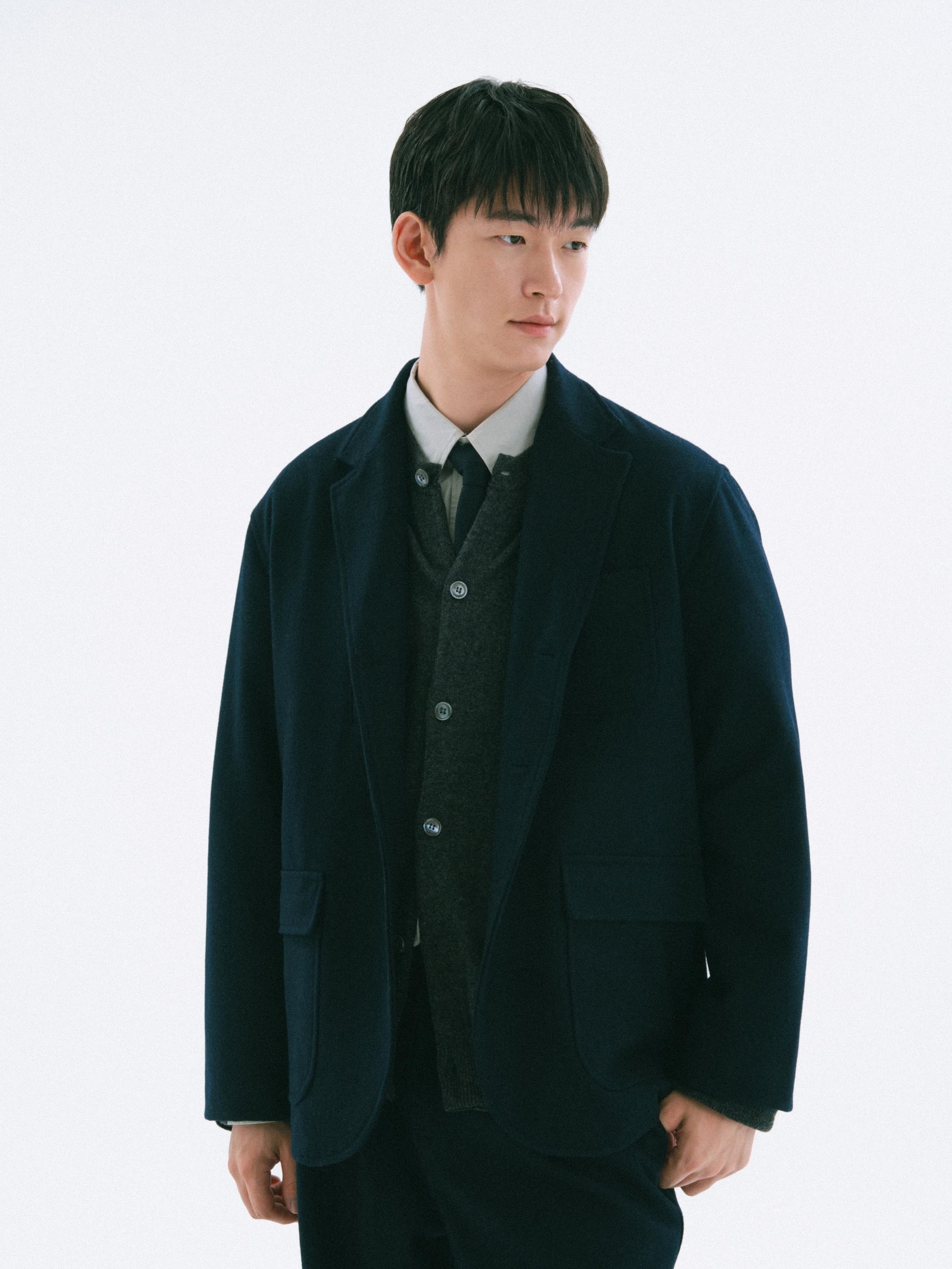 The wool blend offers softness and high durability. It resists pilling, maintaining its shape over time, with minimal silhouette alteration after washing.