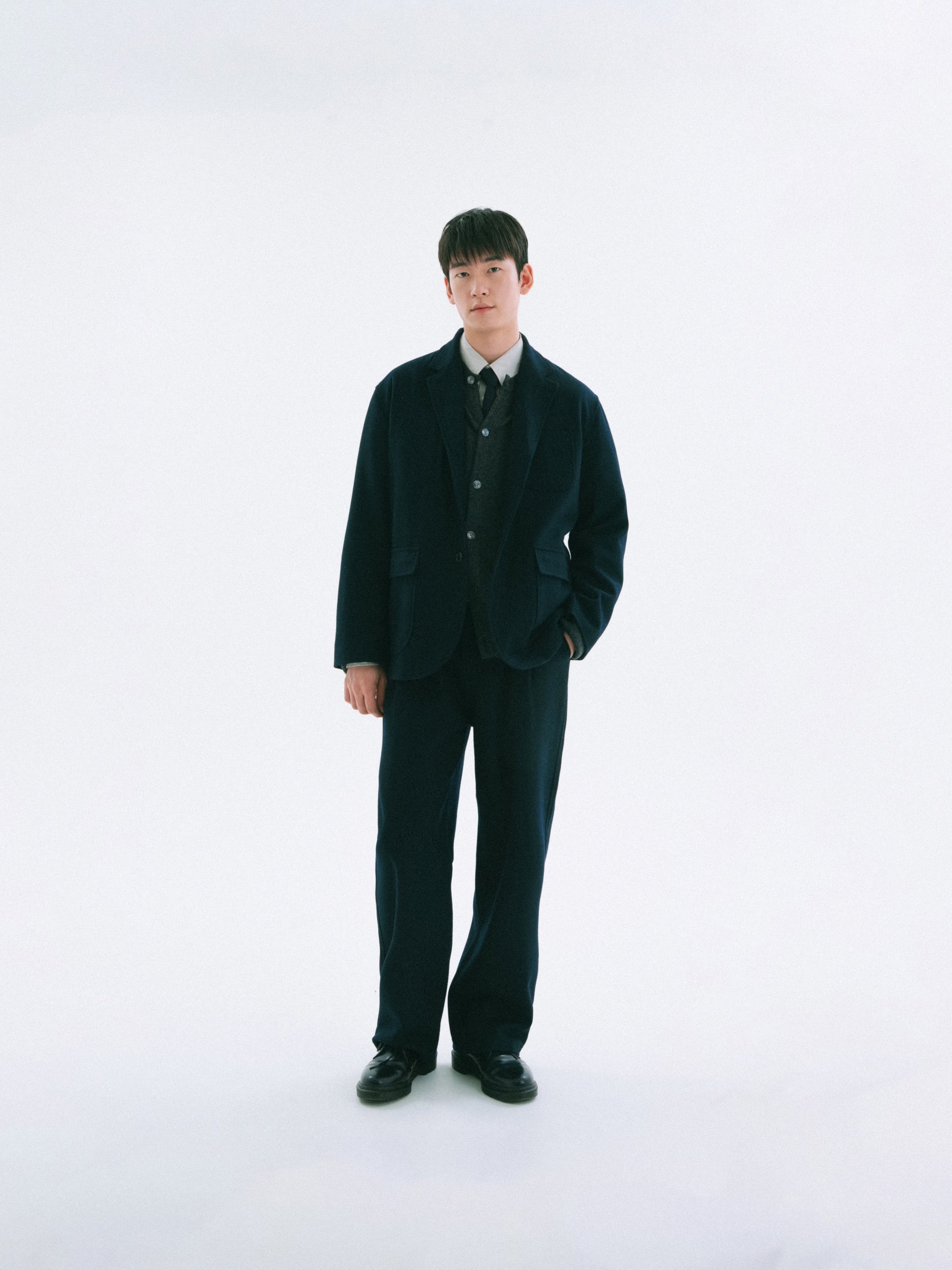 The double-tuck detail provides a stable line in the center. The semi-wide fit moves naturally and complements diverse body shapes without any constraint.