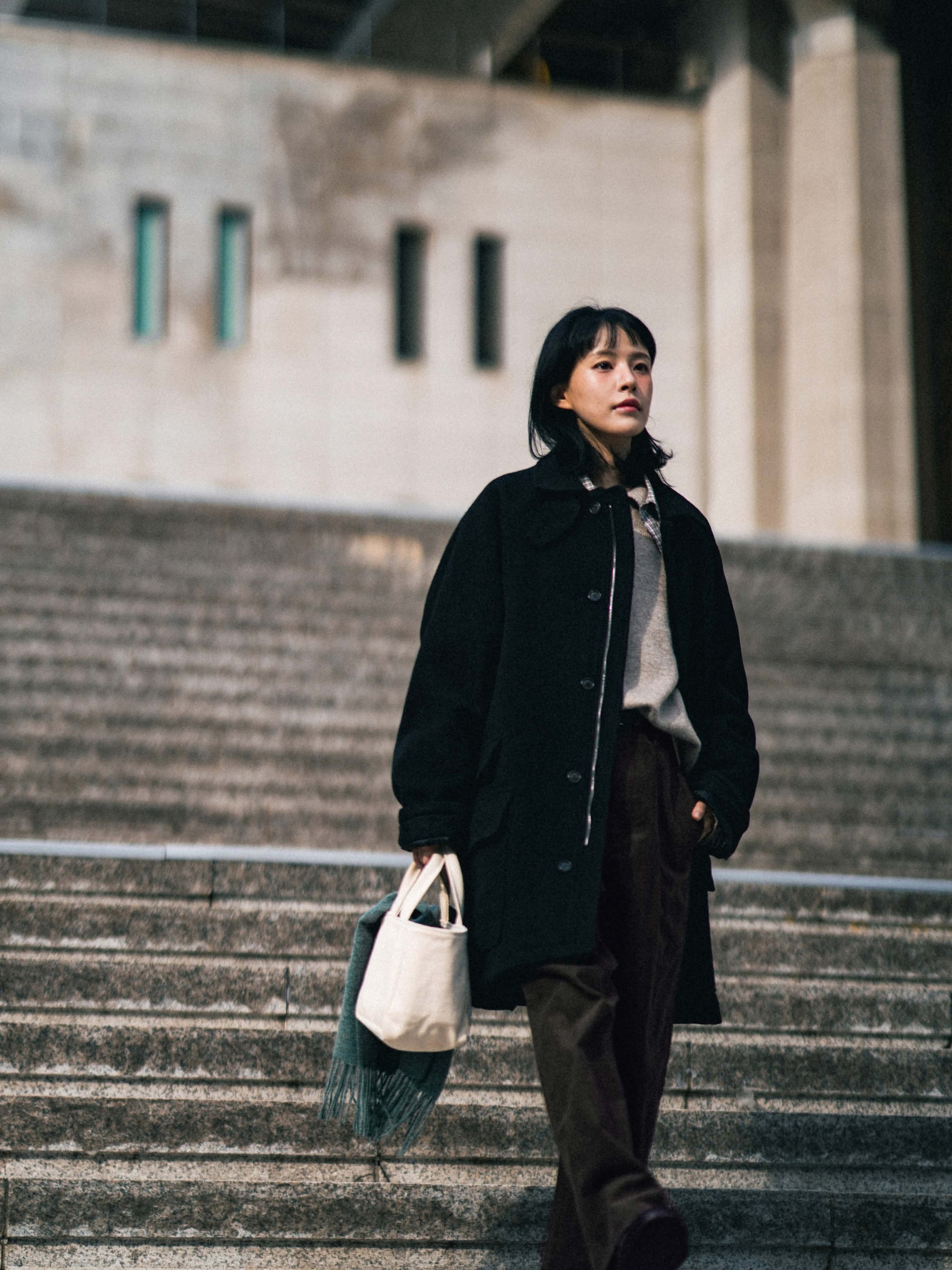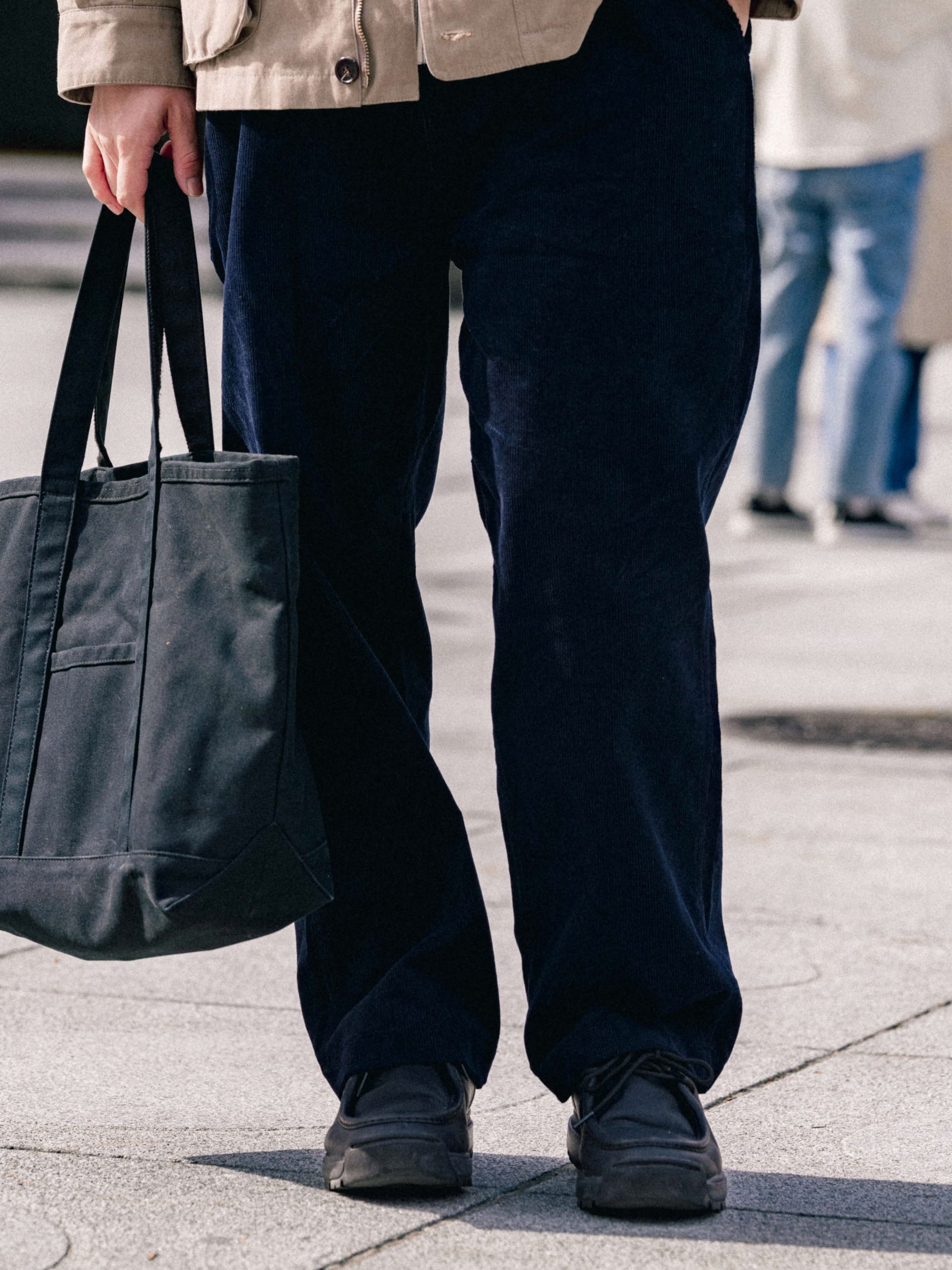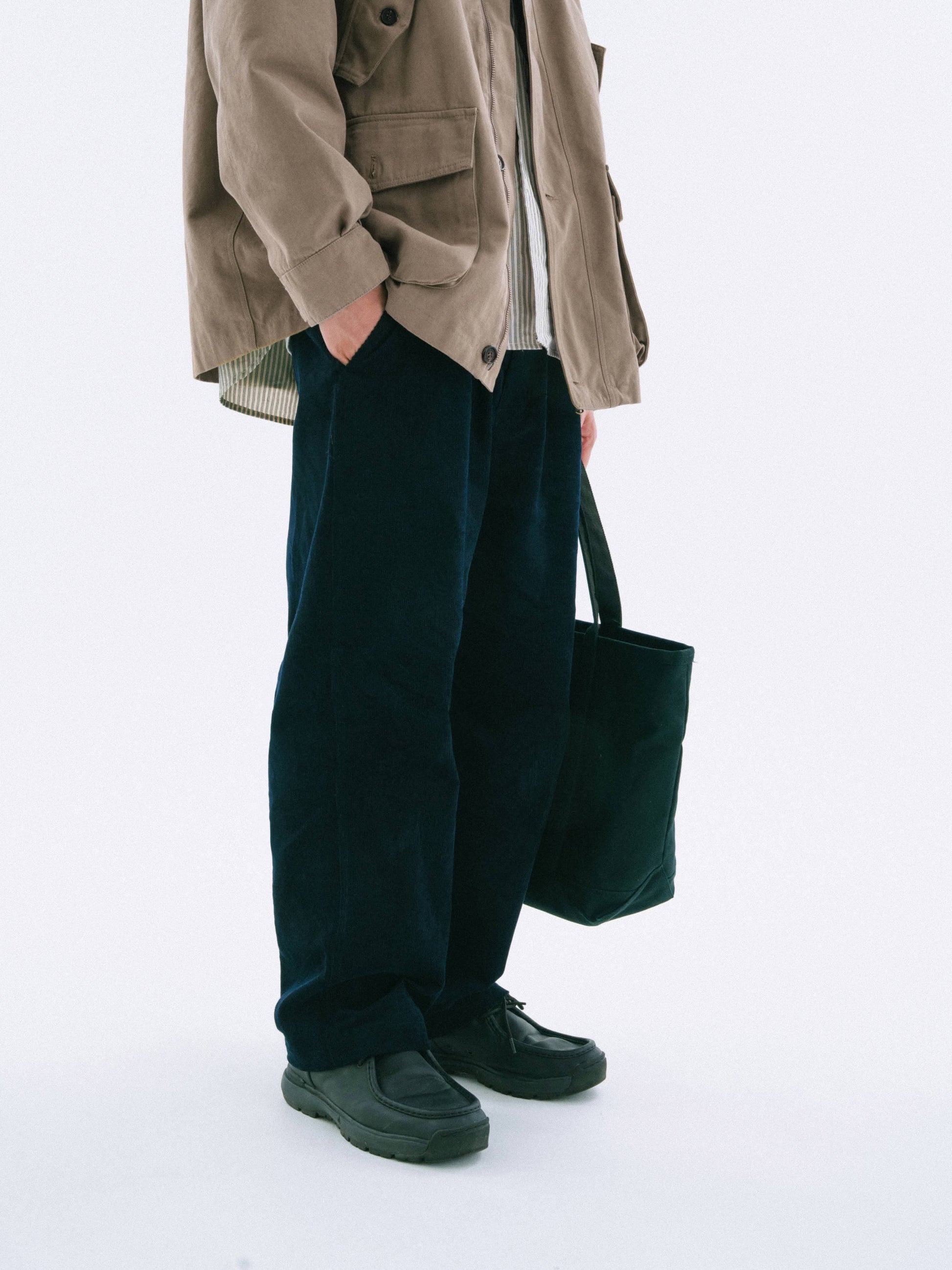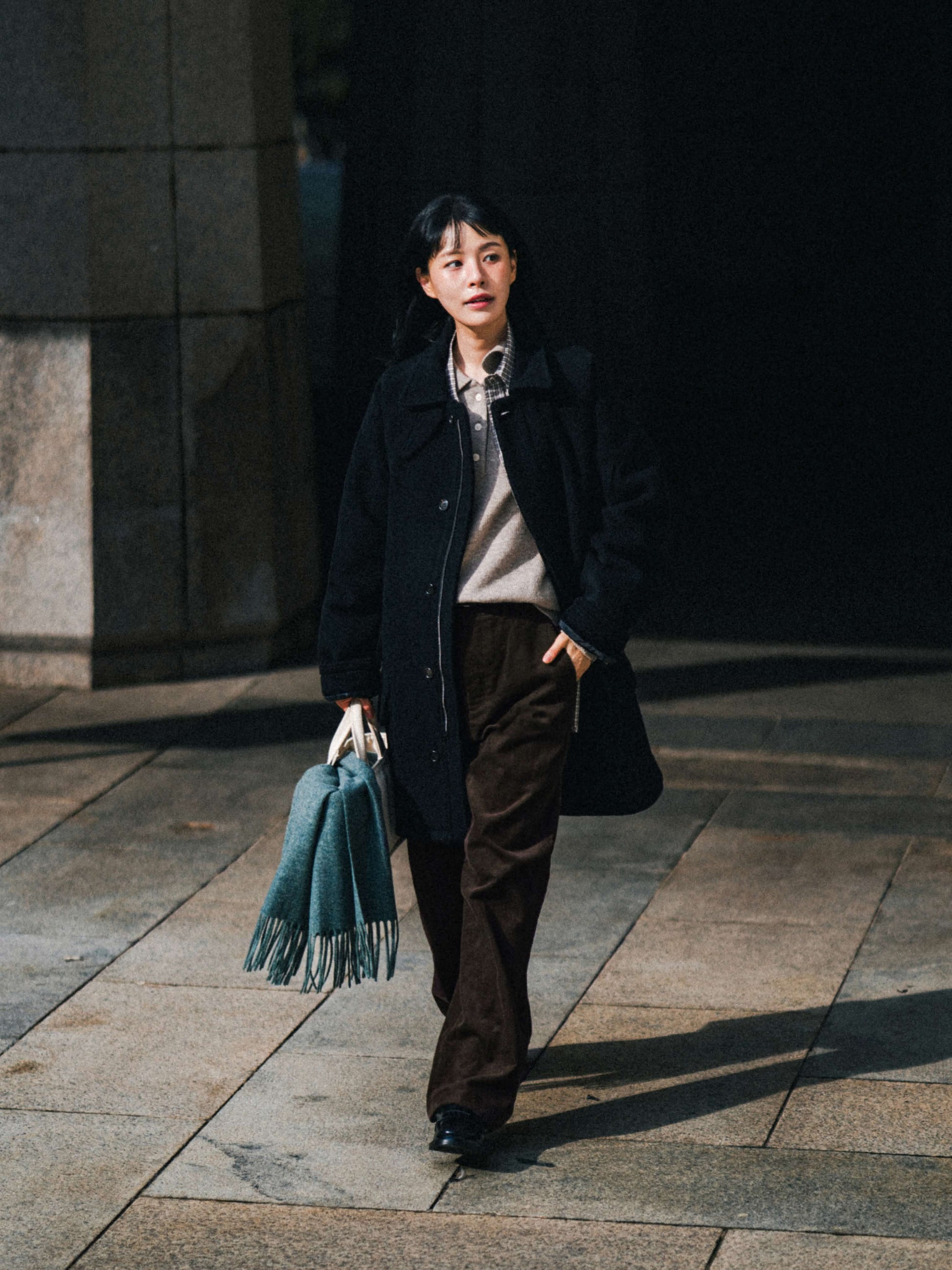 Warm-feeling corduroy material is used. The washing process minimizes shape deformation and increases durability, maintaining a stable silhouette even after washing.
