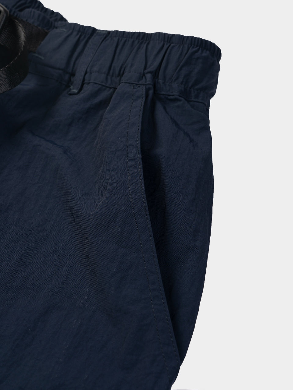 Built-in webbing belt with buckle for easy waist fit adjustments.