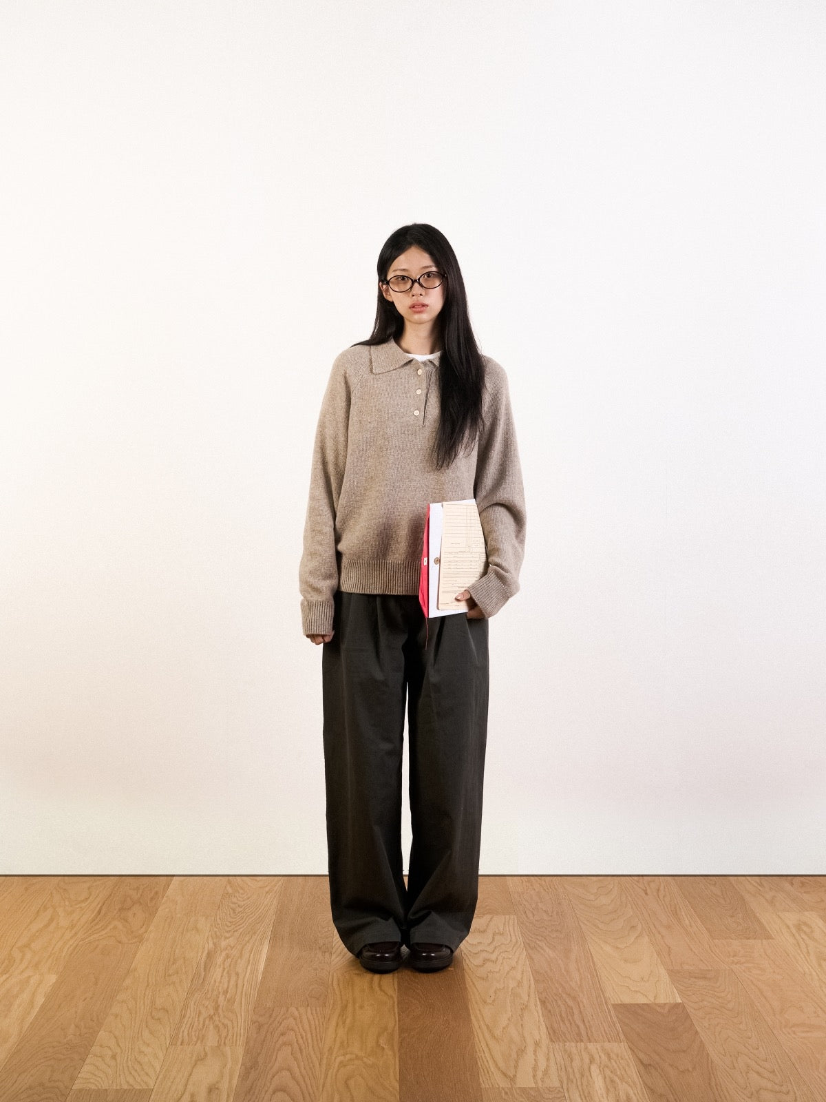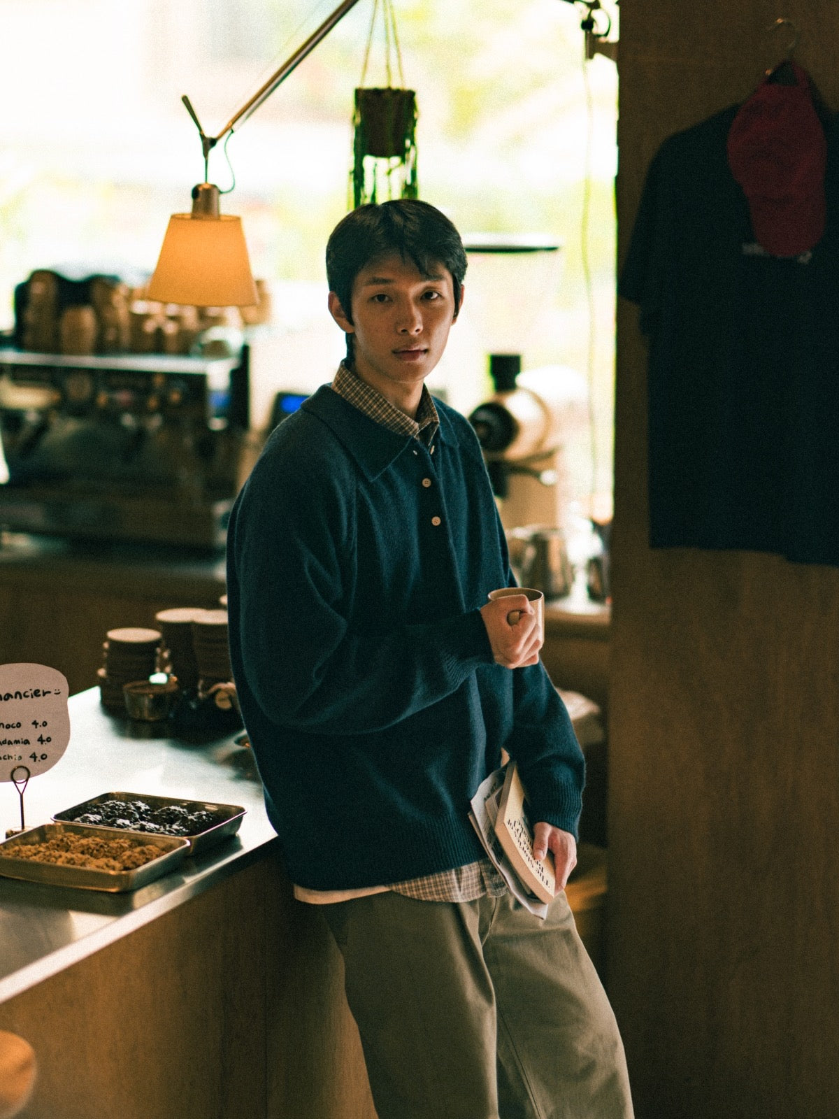 This collared knit is made by expertly mixing yak and wool, offering a softness gentle enough for direct skin contact, with reliable warmth suitable for all seasons. Inspired by the American casual mood of a piqué shirt, it features a generous fit and balanced collar shape. This garment pairs well as a standalone piece or effortlessly layered under outerwear.