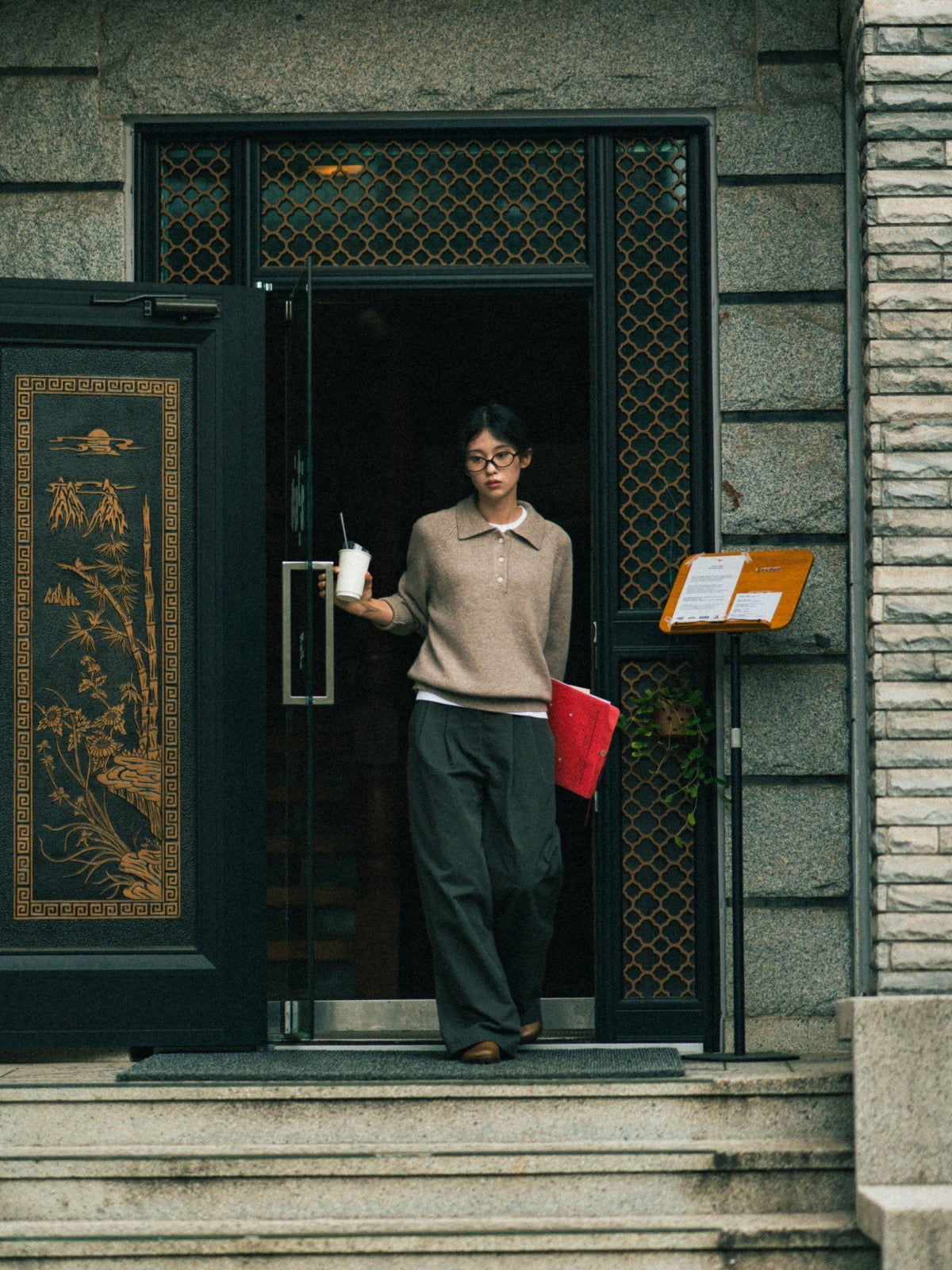 While retaining the classic charm of a collared knit, the design is balanced for easy daily wear.