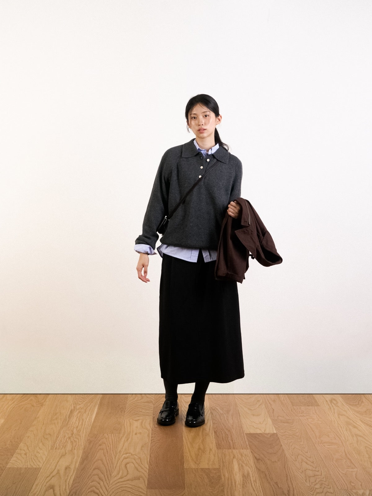 While retaining the classic charm of a collared knit, the design is balanced for easy daily wear.